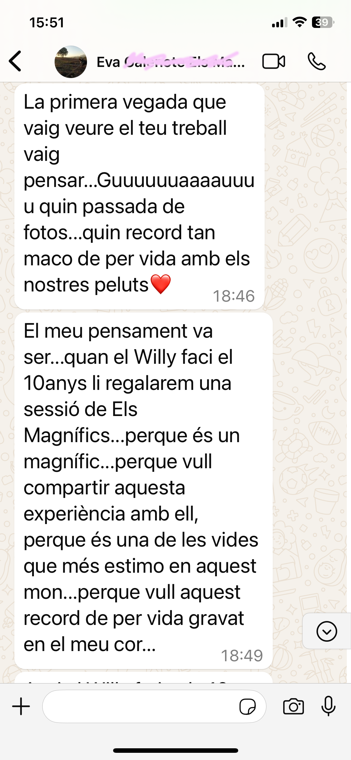Pasado ese tiempo serán tres a la semana. Te contaré cosas relacionadas con este mundo tan animal y te venderé mis servicios. Quiero que tengas recuerdos que te teletransporten sideral junto a lo que más quieres.