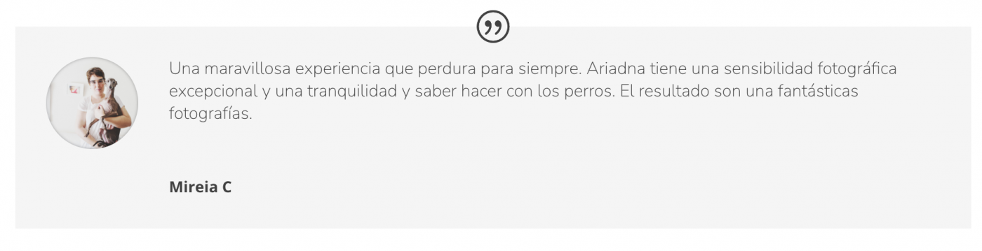 Estos son comentarios de clientas como Mireia que le gustó la experiencia y valora la tranquilidad de hacerse fotos.